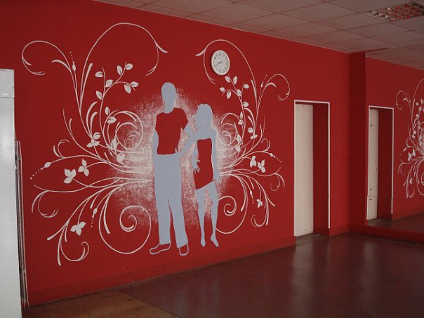 А оформление логотипа на стене танцевального зала стало ярким дизайнерским решением и выражением творческого настроения и креативной атмосферы нашей студии!